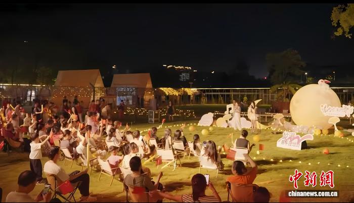 中新网温州10月7日电 (张益聪)共享月饼、共唱红歌、共同交流……近日,在浙江省温州市龙港市的夜色中,一场名为“给月光写首诗·理想就浙Young”的中秋音乐会温情上演。随着月光与乐声交织,10余名返回家乡过节的港澳台侨青年与当地青年共同感受中秋氛围。
