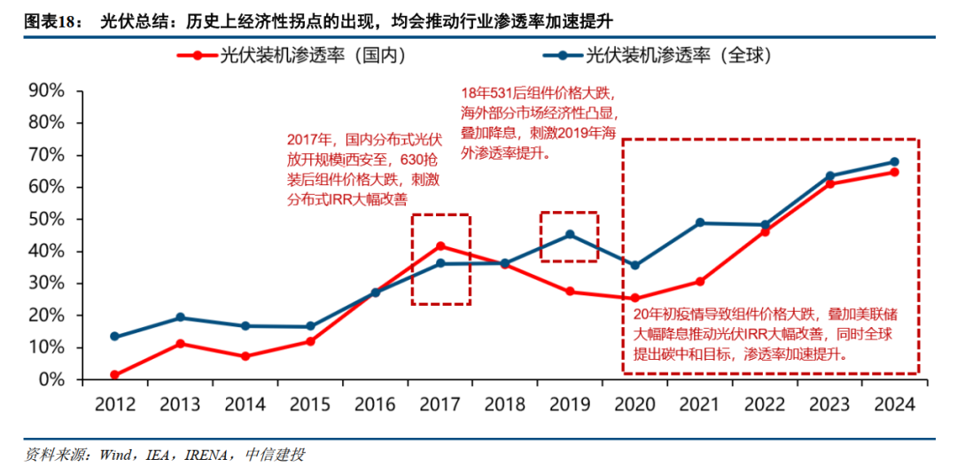 1.1 光伏复盘:历史上IRR的改善均推动渗透率加速提升