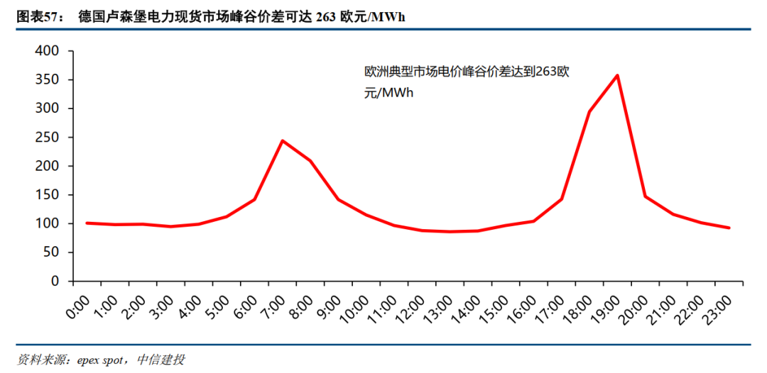 欧洲市场:由于新能源大量并网,导致电力现货市场批发电价峰谷价差可达200欧元/MWh以上。按平均180欧元/MWh峰谷价差测算,储能项目资本金回报率即可达到16%以上。在IRR驱动下,2024年以来欧洲储能加速增长,未来空间巨大。