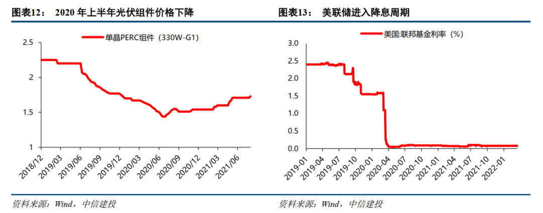 另外,全球宏观流动性宽松,为光伏项目提供了低成本资金环境。美联储在2020年上半年开启大幅降息,联邦基金利率迅速降至接近零的水平,带动全球进入降息周期。产业降本与宏观降息形成共振,电站设备投资与项目融资成本双双下降,为后续需求爆发奠定基础。