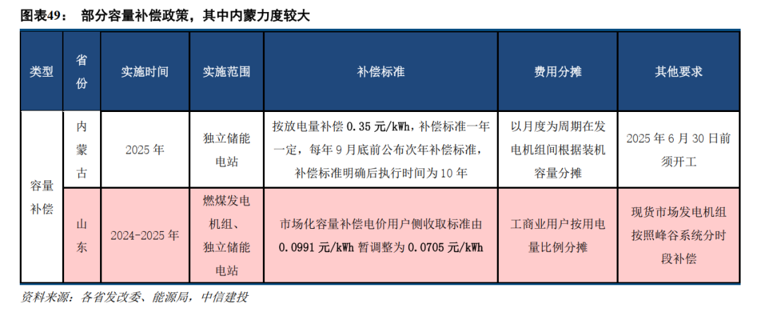 2.4 容量电价/容量补偿&峰谷价差,独立储能在多省已实现良好经济性