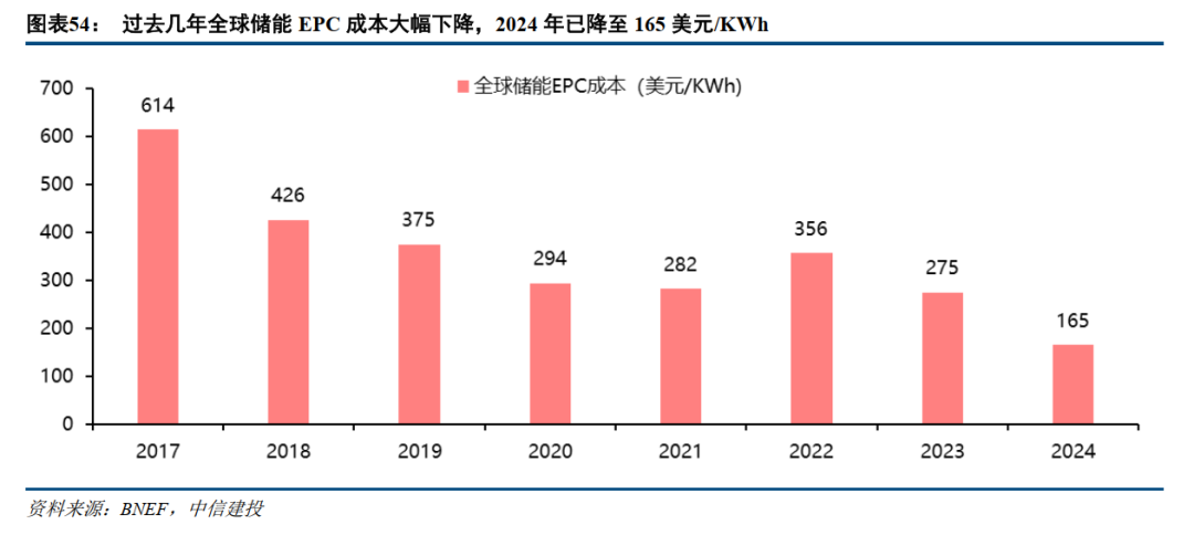 从当前储能的状态来看,新能源全面入市后,峰谷价差有望拉大。同时国内容量电价/补偿进一步增厚IRR分子端收益。此外分母端储能投资成本过去几年大幅下降,以及海外进入降息周期之后,都会带动储能资本金IRR的提升。